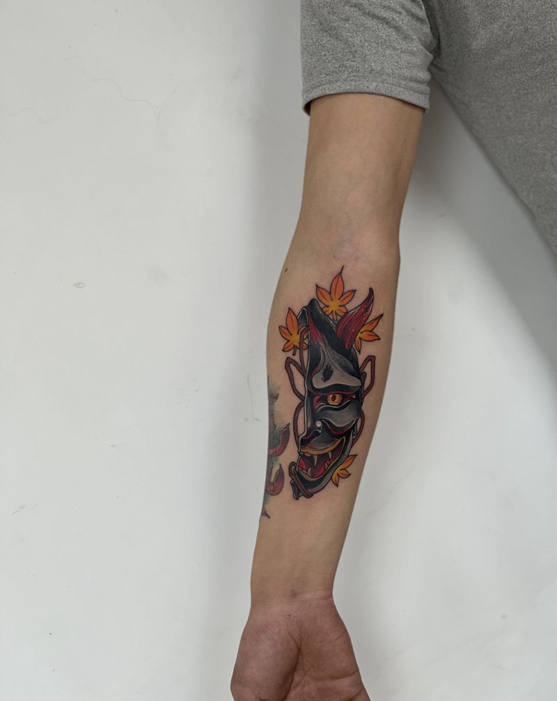 当前位置: 首页 >江苏省徐州市纹身店-也花刺青纹身图案>般若面具纹身图片_手臂手部New SchoolOld School般若 面具纹身图案