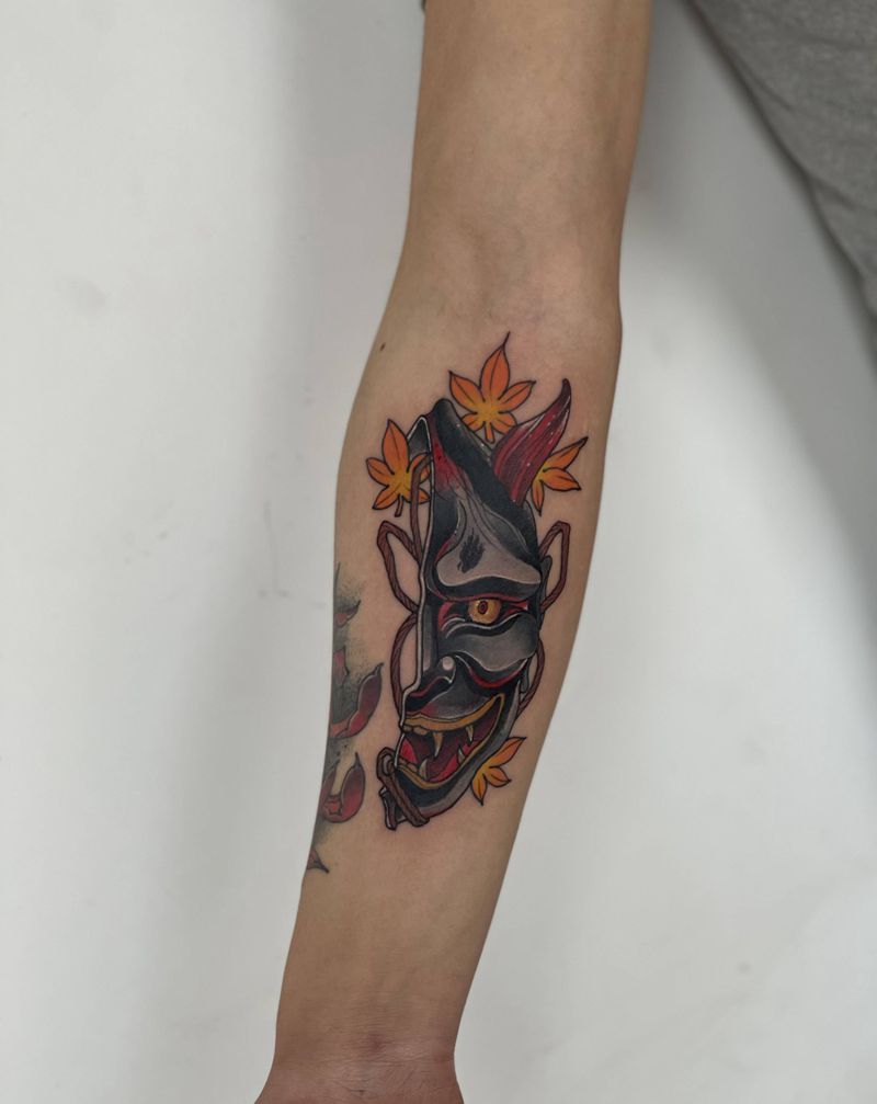 当前位置: 首页 >江苏省徐州市纹身店-也花刺青纹身图案>般若面具纹身图片_手臂手部New SchoolOld School般若 面具纹身图案