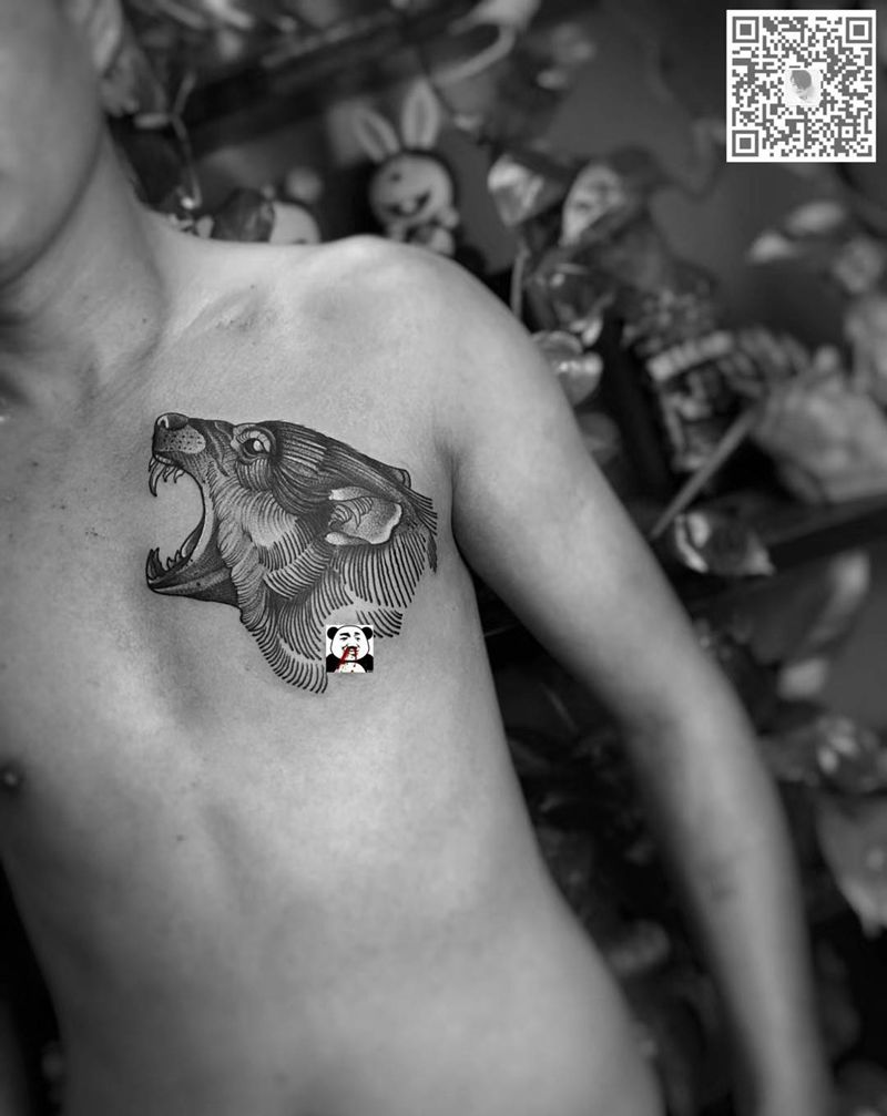 点刺狼纹身图片_胸部几何点刺纹身图案