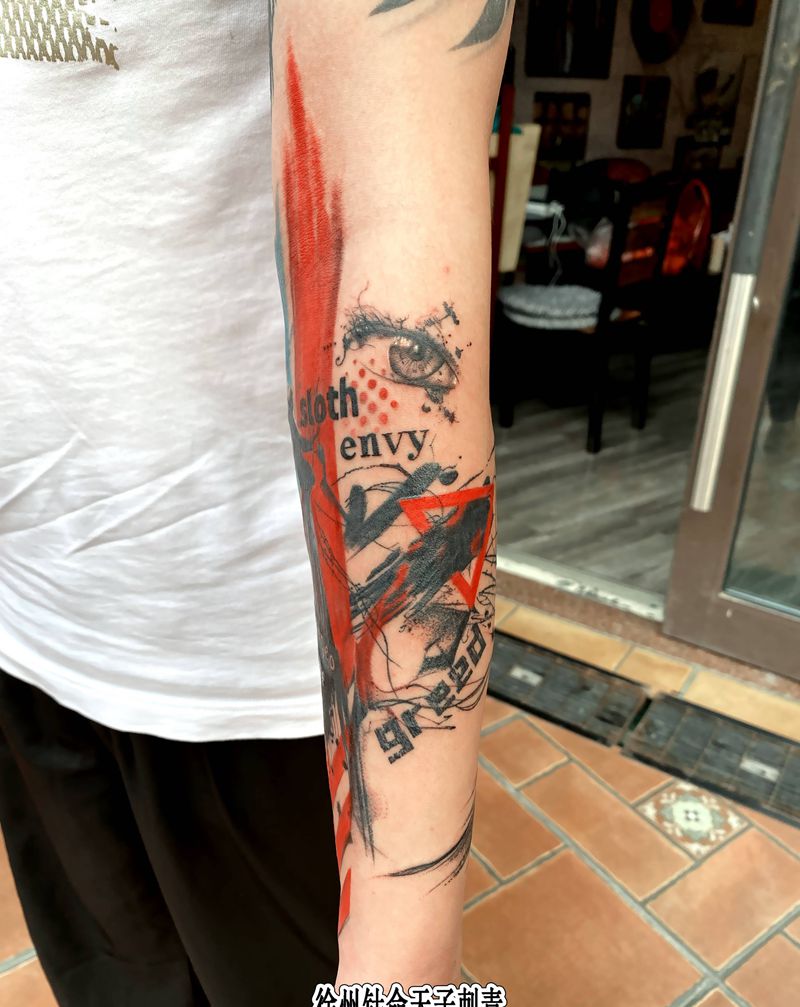 肖申克的救赎和七宗罪纹身图片_手臂水彩水墨纹身图案