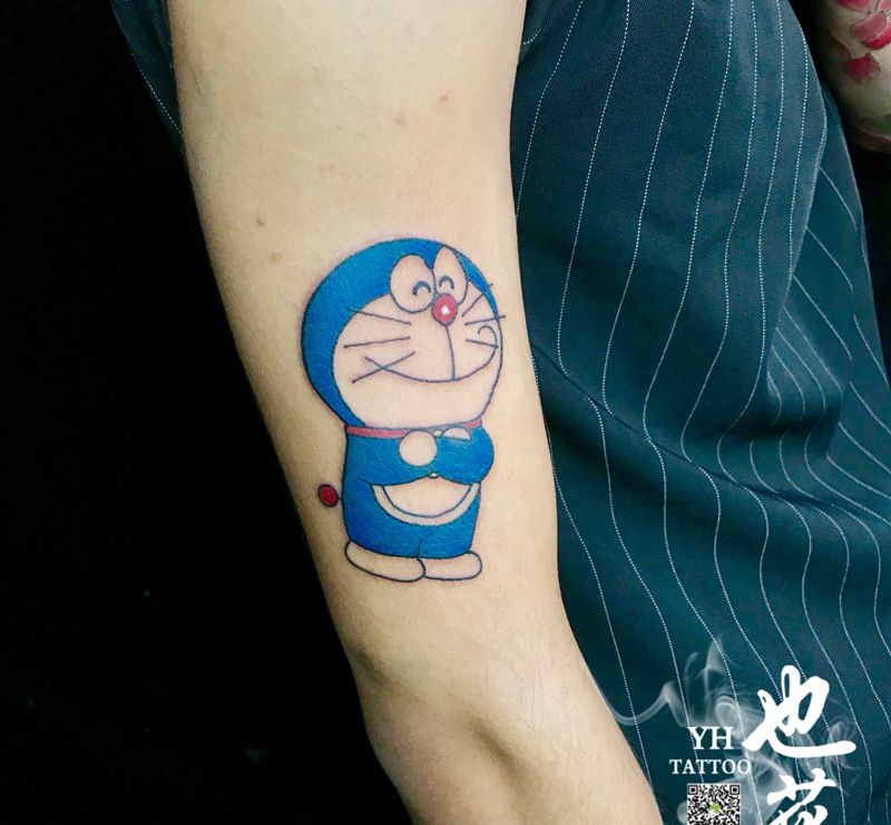 机器猫纹身图片_手臂Old School机器猫纹身图案