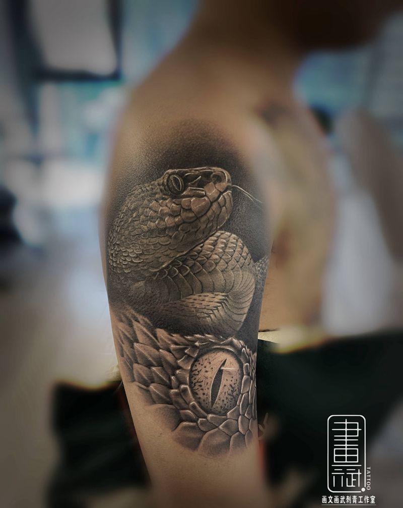 当前位置: 首页 >江苏省徐州市纹身店-徐州画文画武刺青工作室纹身图案>蛇纹身图片_手臂欧美写实蛇眼睛写实动物纹身图案