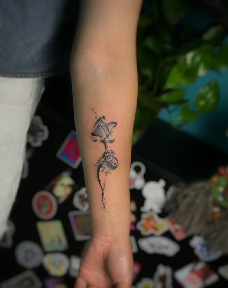 当前位置: 首页 >江苏省徐州市纹身店-也花刺青纹身图案>水墨荷纹身图片_手臂手部水彩水墨荷花纹身图案