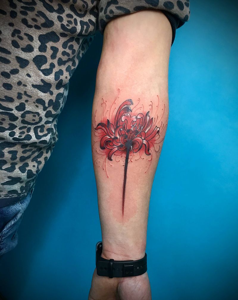 彼岸花纹身图片_手臂新传统水彩彼岸花纹身图案