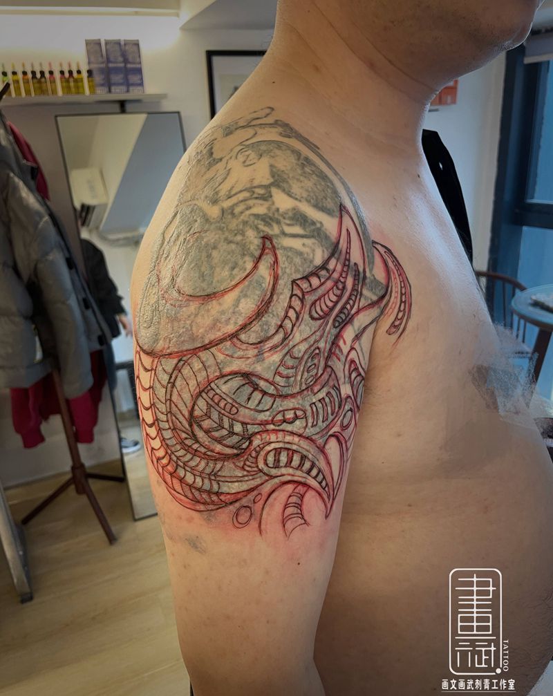 当前位置: 首页 >江苏省徐州市纹身店-徐州画文画武刺青工作室纹身图案>遮盖纹身图片_手臂欧美写实遮盖生化机械机械纹身图案