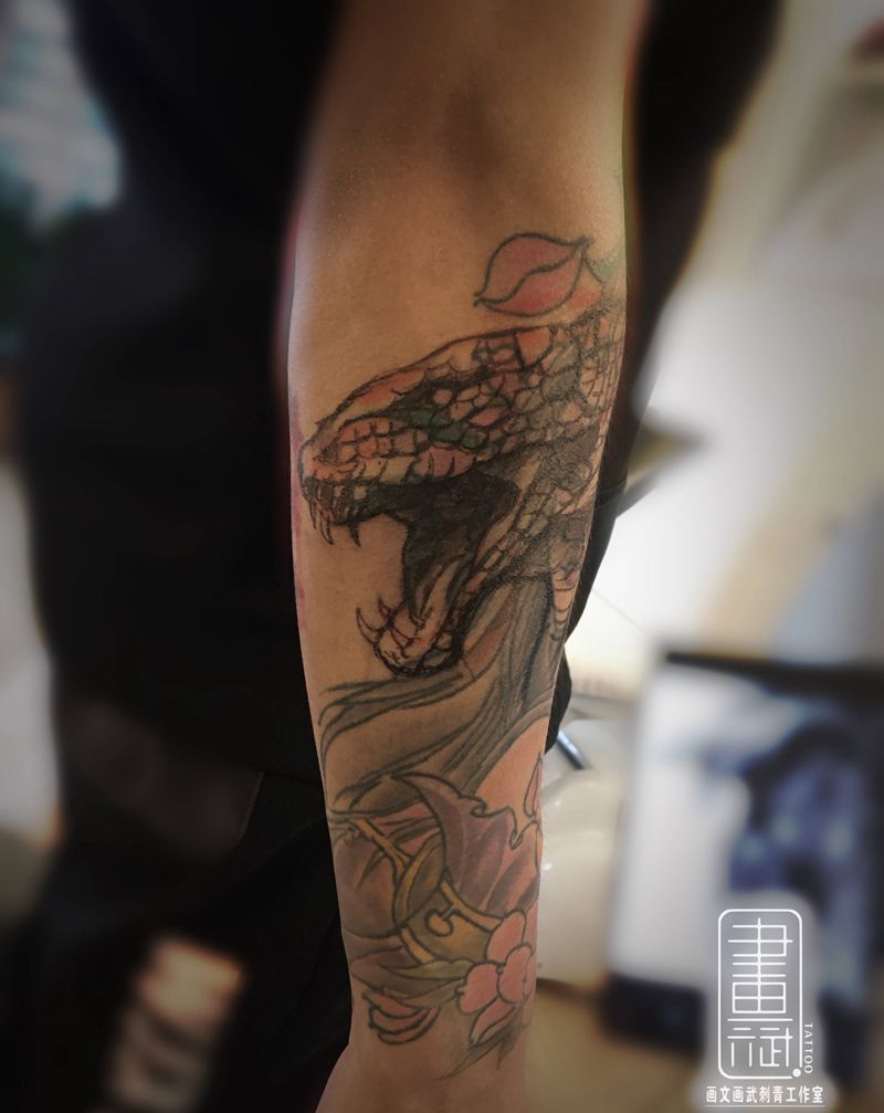 当前位置: 首页 >江苏省徐州市纹身店-徐州画文画武刺青工作室纹身图案>遮盖纹身图片_手臂欧美写实遮盖蛇暴力遮盖纹身图案
