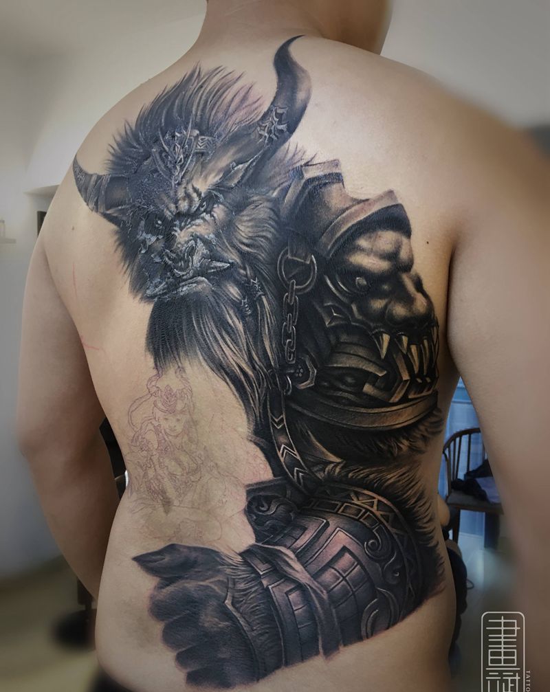 当前位置: 首页 >江苏省徐州市纹身店-徐州画文画武刺青工作室纹身图案>牛魔王纹身图片_背部欧美写实牛魔王铁扇公主平天大圣纹身图案