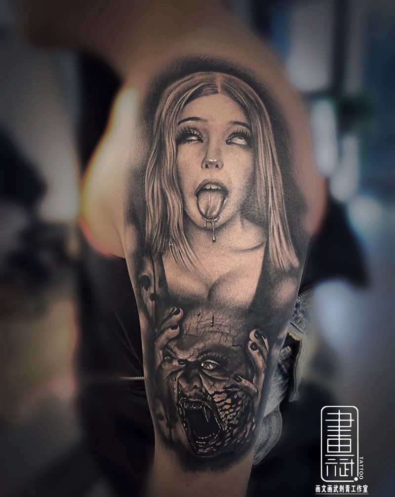当前位置: 首页 >江苏省徐州市纹身店-徐州画文画武刺青工作室纹身图案>欲与恶纹身图片_手臂欧美写实血腥暗黑恐怖纹身图案