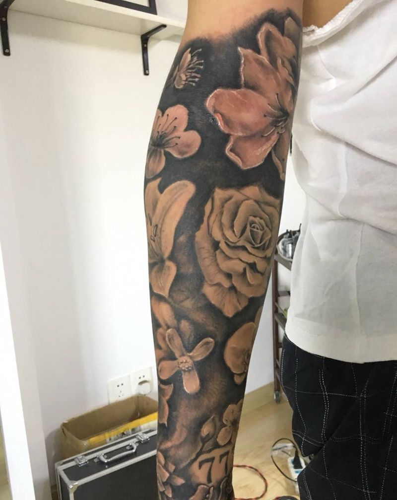 当前位置: 首页 >江苏省徐州市纹身店-徐州画文画武刺青工作室纹身图案>“花”臂纹身图片