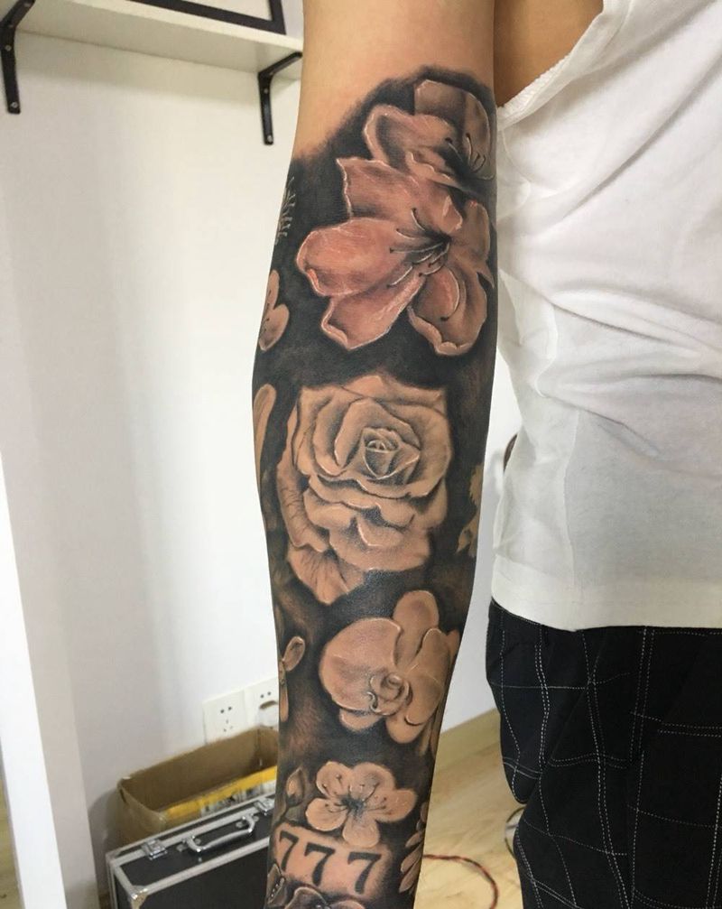 当前位置: 首页 >江苏省徐州市纹身店-徐州画文画武刺青工作室纹身图案>“花”臂纹身图片