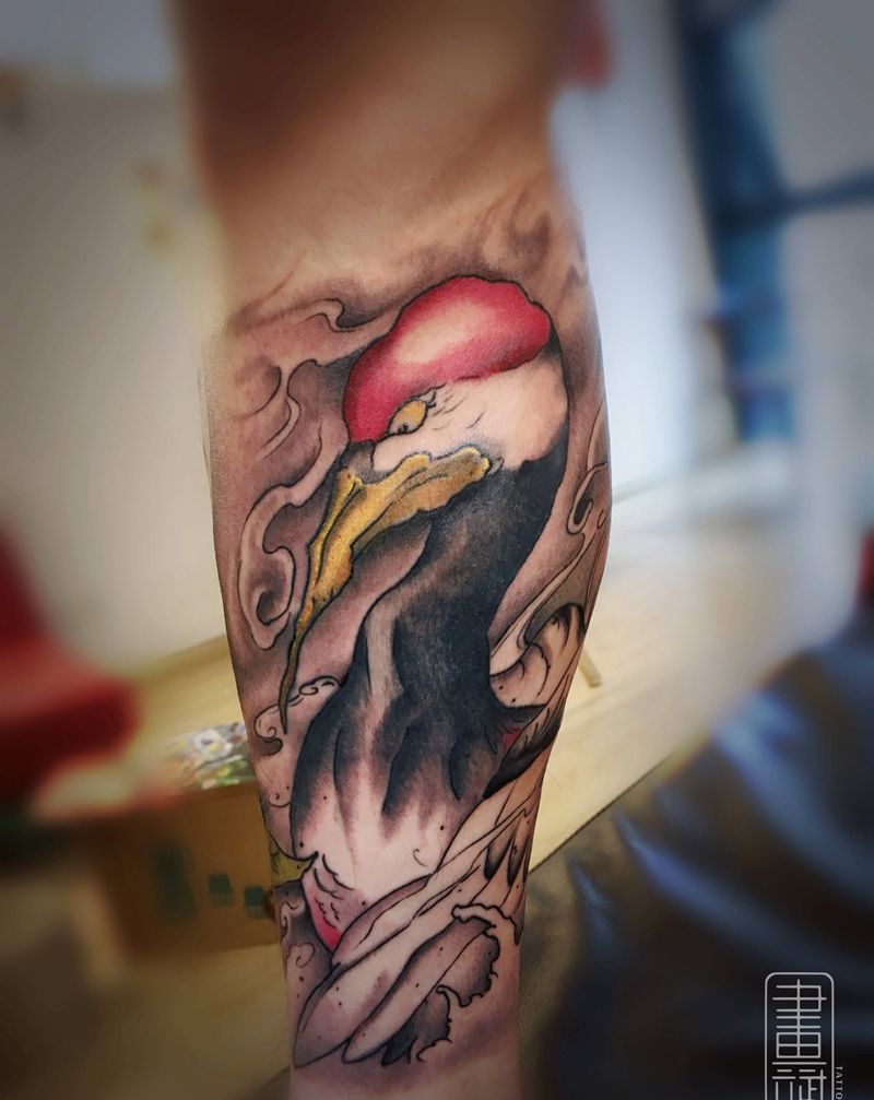 当前位置: 首页 >江苏省徐州市纹身店-徐州画文画武刺青工作室纹身图案>包小腿纹身图片_腿部新传统仙鹤蛇牡丹纹身图案