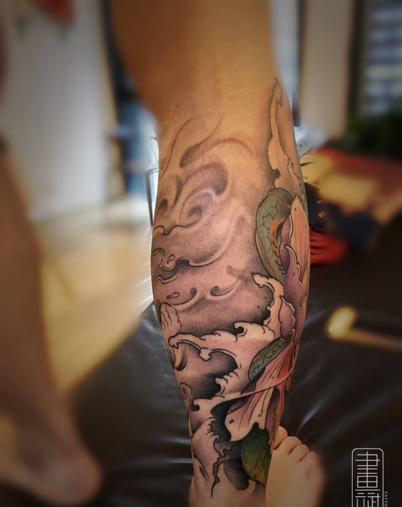 一组15张莲花纹身手