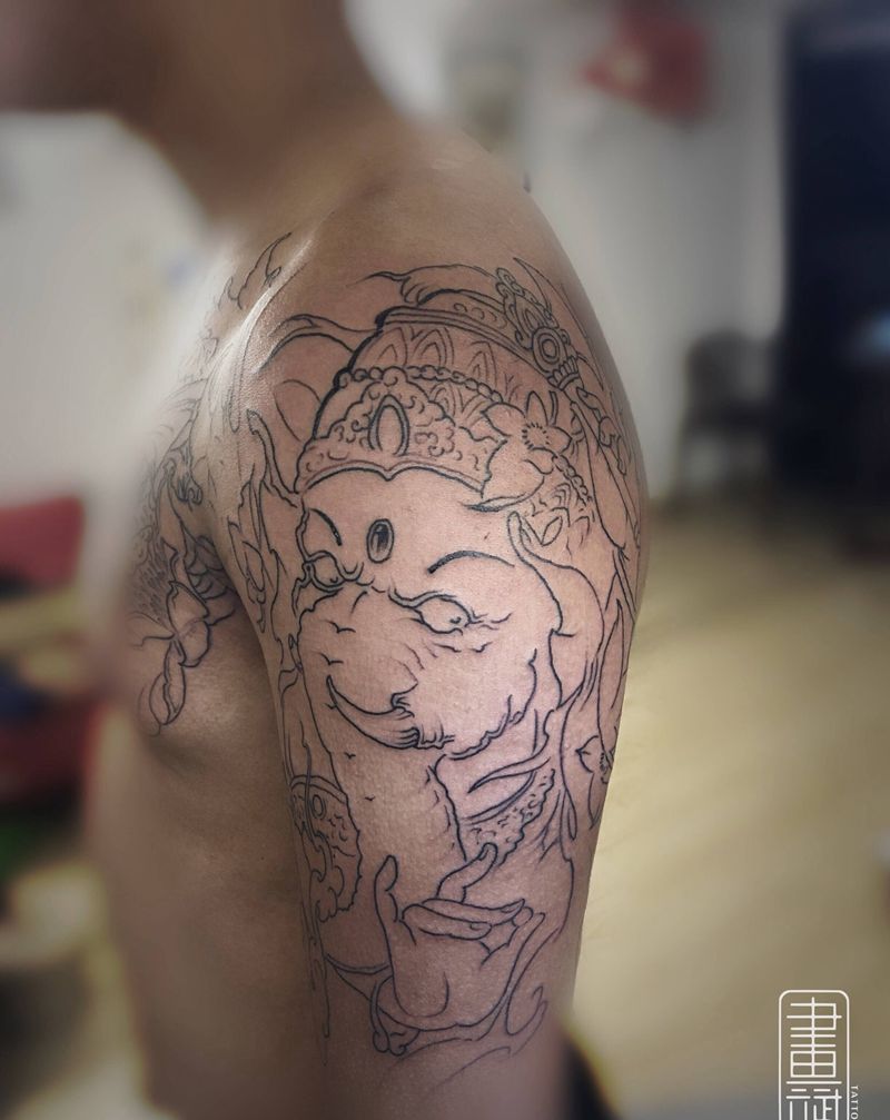 当前位置: 首页 >江苏省徐州市纹身店-徐州画文画武刺青工作室纹身图案>半甲纹身图片_肩部胸部纹身图案
