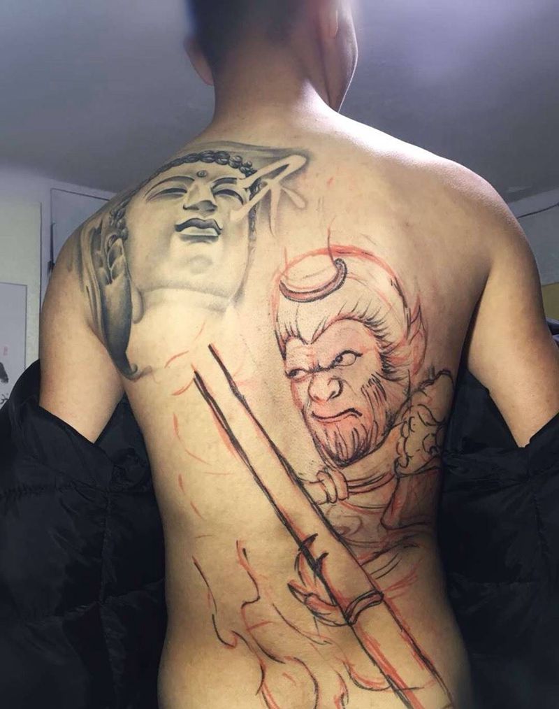 黑灰满背纹身图案