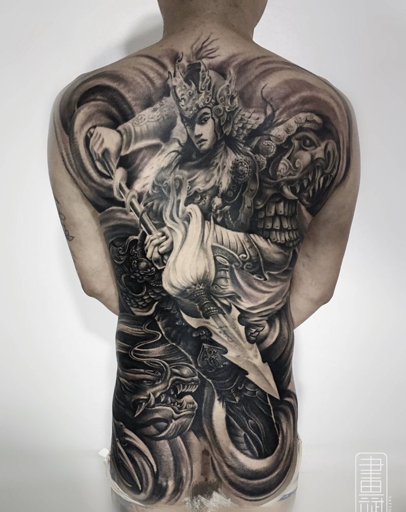 赵子龙纹身图片_背部欧美写实赵云龙临赵子龙纹身图案