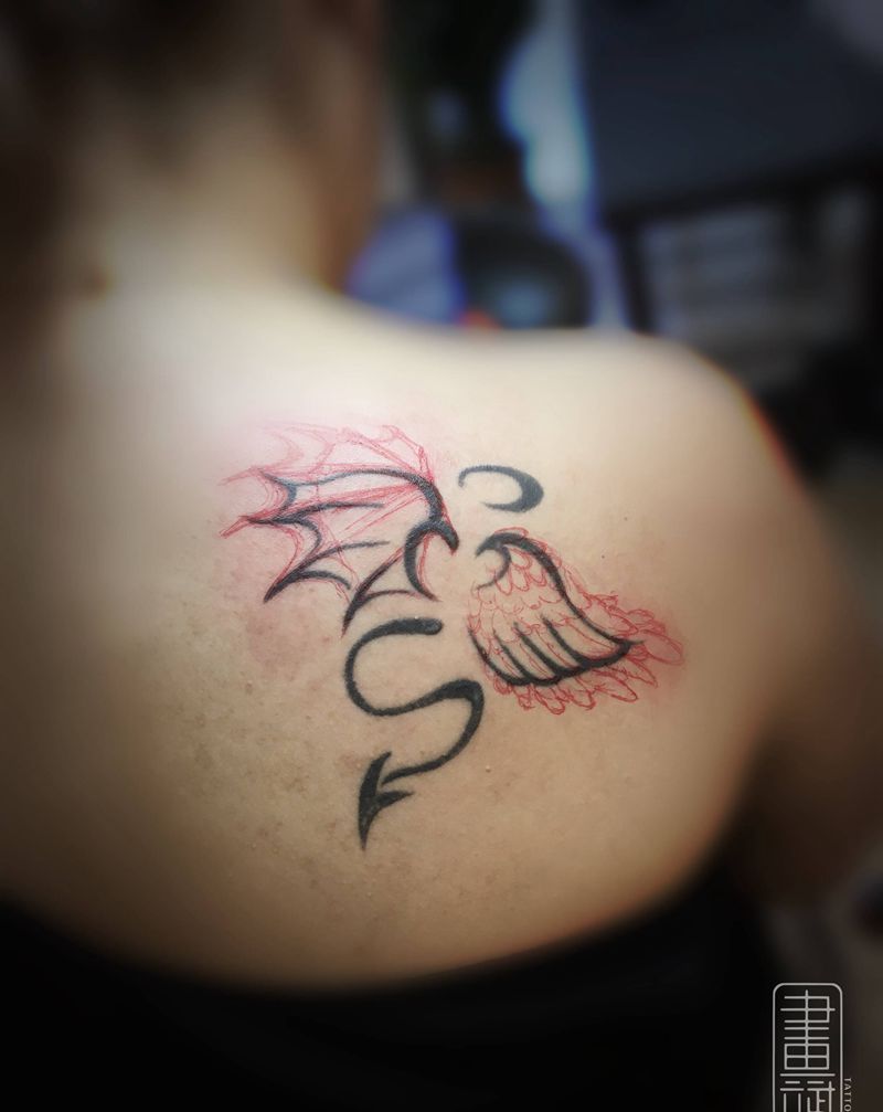 当前位置: 首页 >江苏省徐州市纹身店-徐州画文画武刺青工作室纹身图案>恶魔天使纹身图片_肩部欧美写实恶魔天使翅膀修改遮盖纹身图案