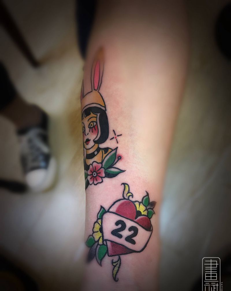 当前位置: 首页 >江苏省徐州市纹身店-徐州画文画武刺青工作室纹身图案>old school纹身图片_手臂Old School兔子数字纹身图案