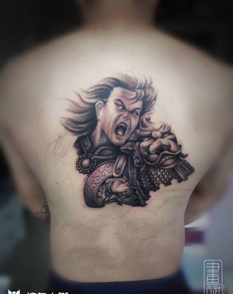杀神白起纹身图片_背部欧美写实白起杀神白起满背白起纹身图案