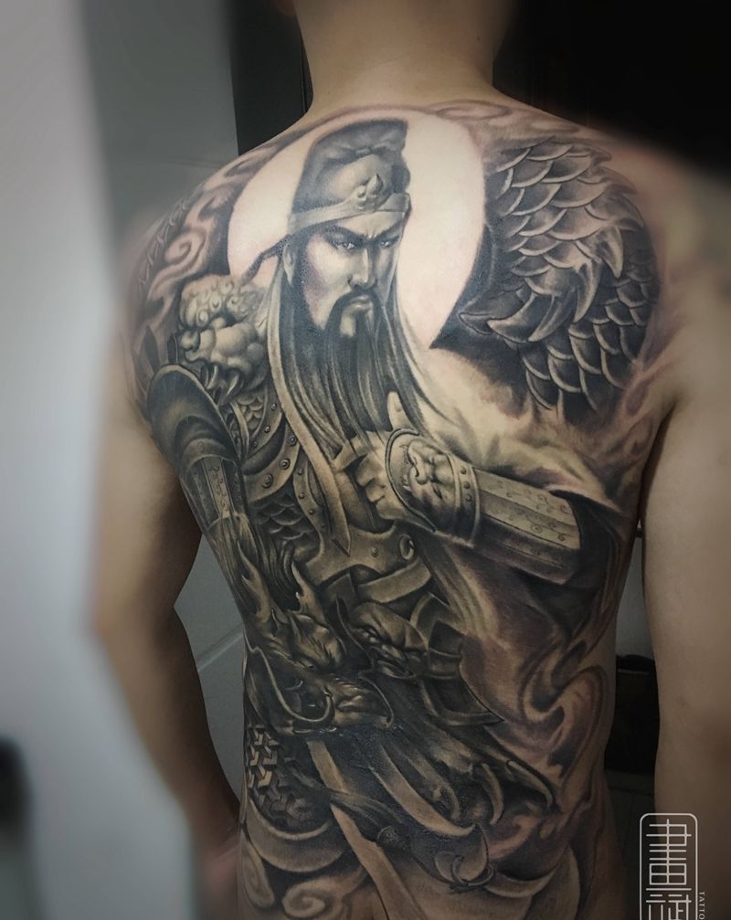 关云长纹身图片_背部欧美写实关公关羽关云长纹身图案