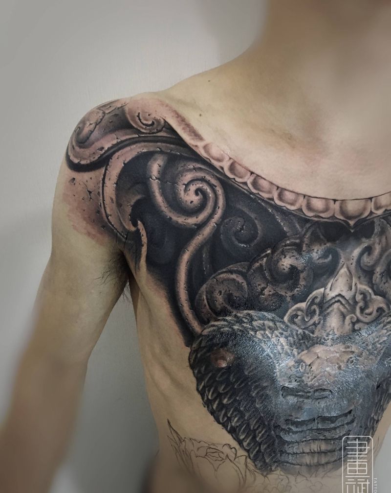 当前位置: 首页 >江苏省徐州市纹身店-徐州画文画武刺青工作室纹身图案>守护纹身图片_腹部胸部欧美写实眼镜蛇石雕牡丹花纹身图案