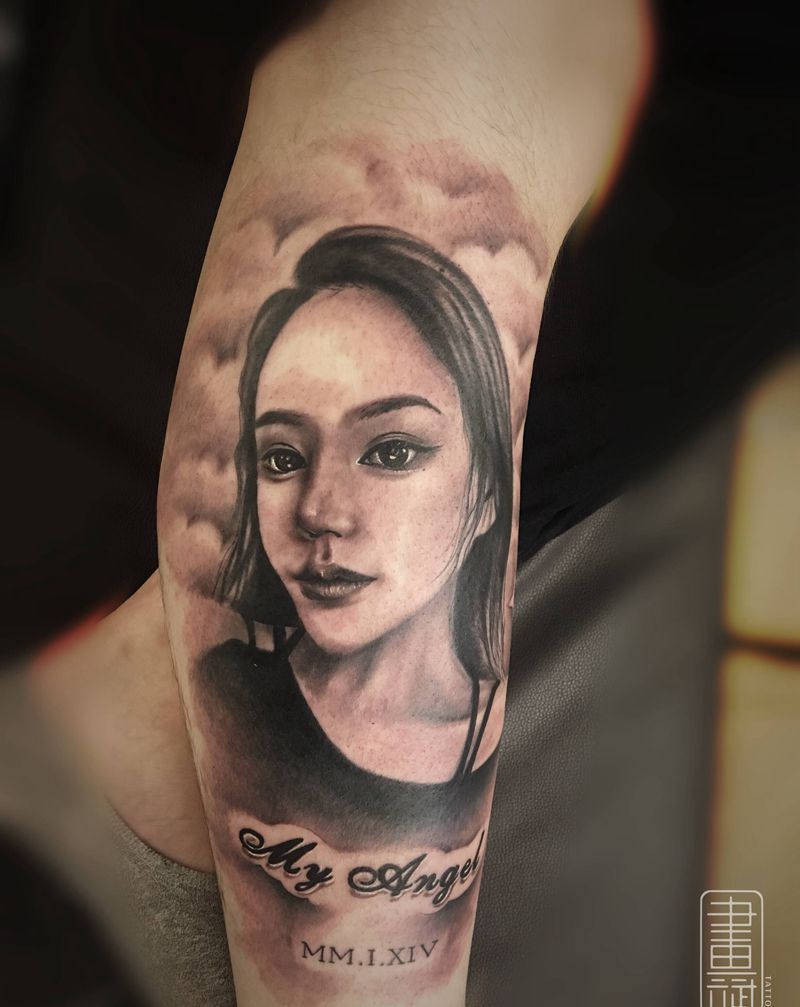 当前位置: 首页 >江苏省徐州市纹身店-徐州画文画武刺青工作室纹身图案>肖像纹身纹身图片_腿部欧美写实肖像照片情侣照片纹身图案