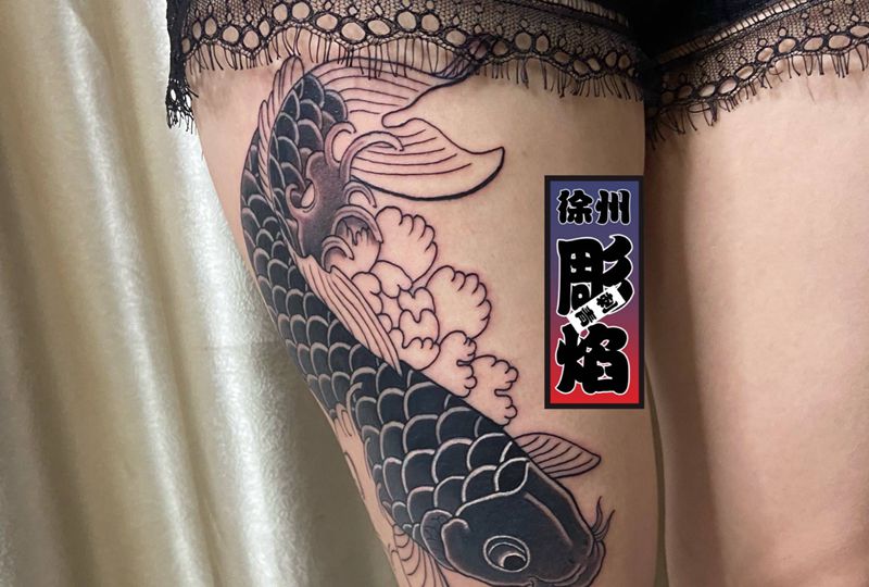 当前位置: 首页 >江苏省徐州市纹身店-彫焰刺青纹身图案>鲤鱼牡丹浪花纹身图片_老传统纹身图案