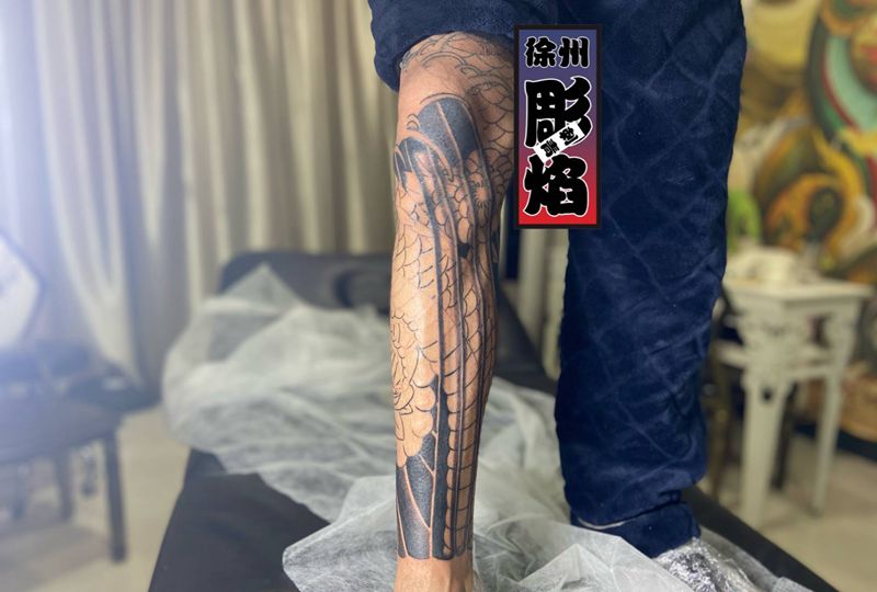 • T网红王老大花腿龙纹身图片_腿部新传统纹身图案