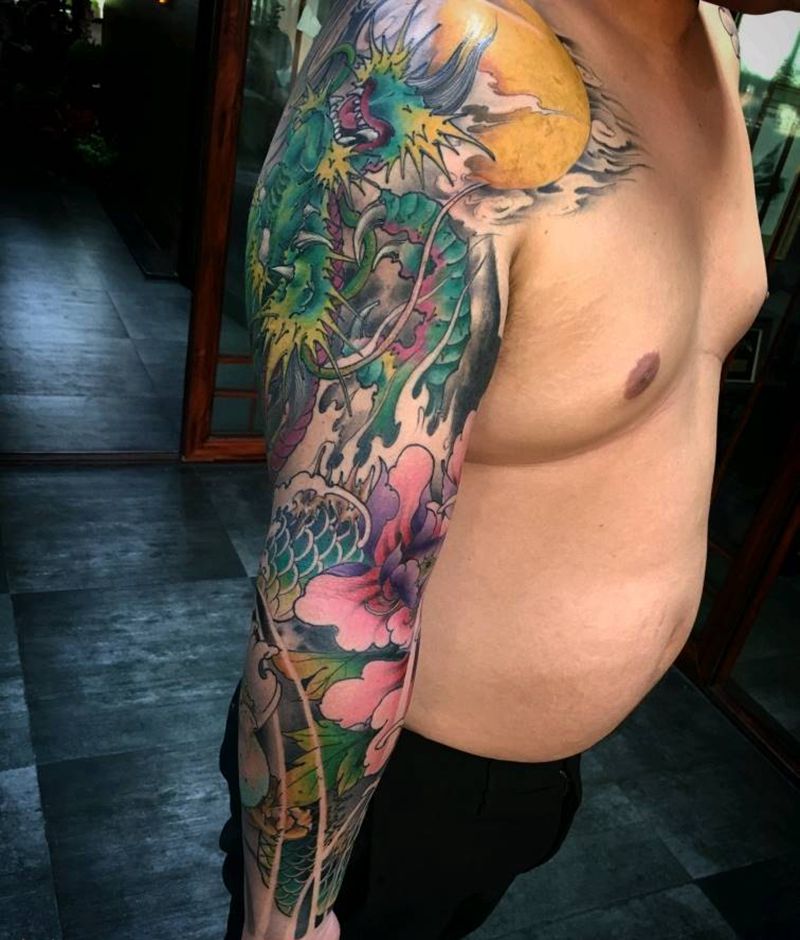 • T网红王老大花腿龙纹身图片_腿部新传统纹身图案