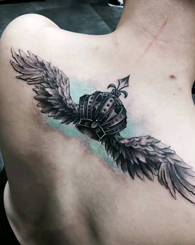 当前位置: 首页 >江苏省徐州市纹身店-叁界刺青工作馆纹身图案>皇冠 翅膀纹身图片_肩部背部欧美传统原创成品纹身图案
