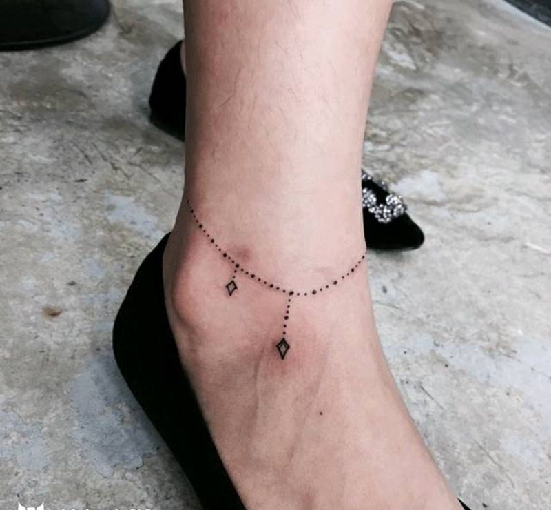 当前位置: 首页 >江苏省徐州市纹身店-叁界刺青工作馆纹身图案>点成线 小脚链纹身图片