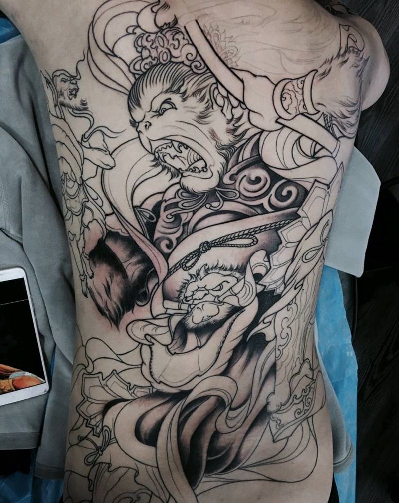 黑灰满背纹身图案