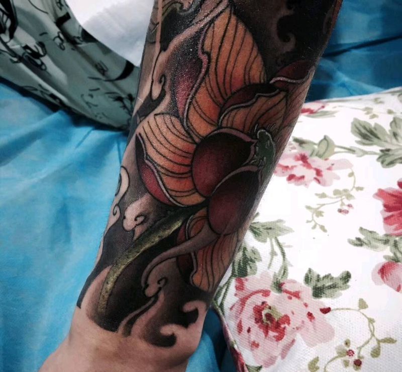 当前位置: 首页 >江苏省徐州市纹身店-叁界刺青工作馆纹身图案>荷花包小臂纹身图片