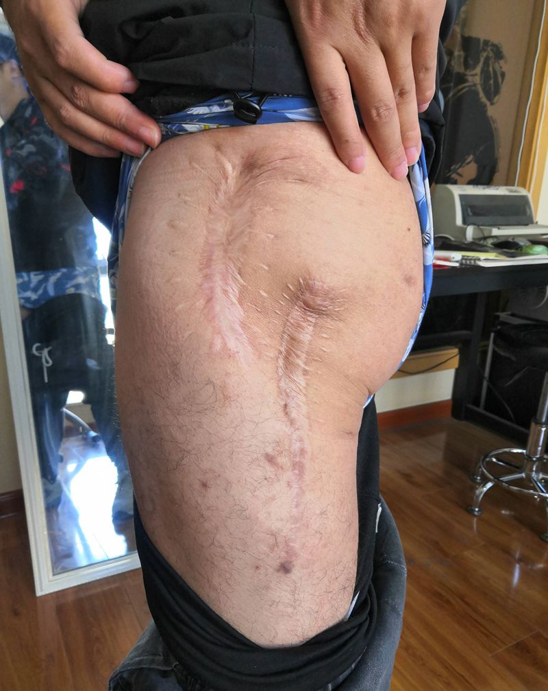 当前位置: 首页 >江苏省徐州市纹身店-徐州胜杰纹身纹身图案>疤痕遮盖武士纹身图片_腿部欧美写实纹身图案