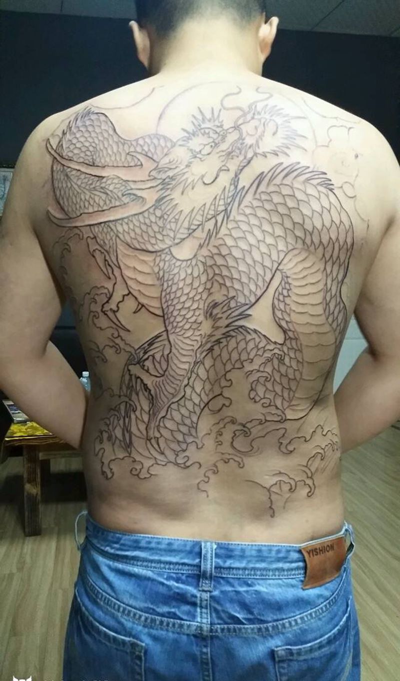 当前位置: 首页 >江苏省徐州市纹身店-徐州胜杰纹身纹身图案>满背龙割线完成纹身图片