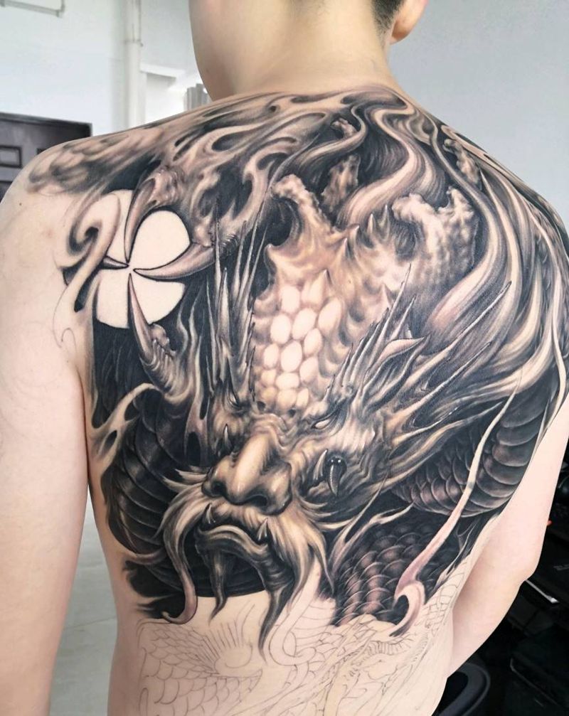 临摹岳大师作品龙炽纹身图片_背部手臂欧美写实纹身图案