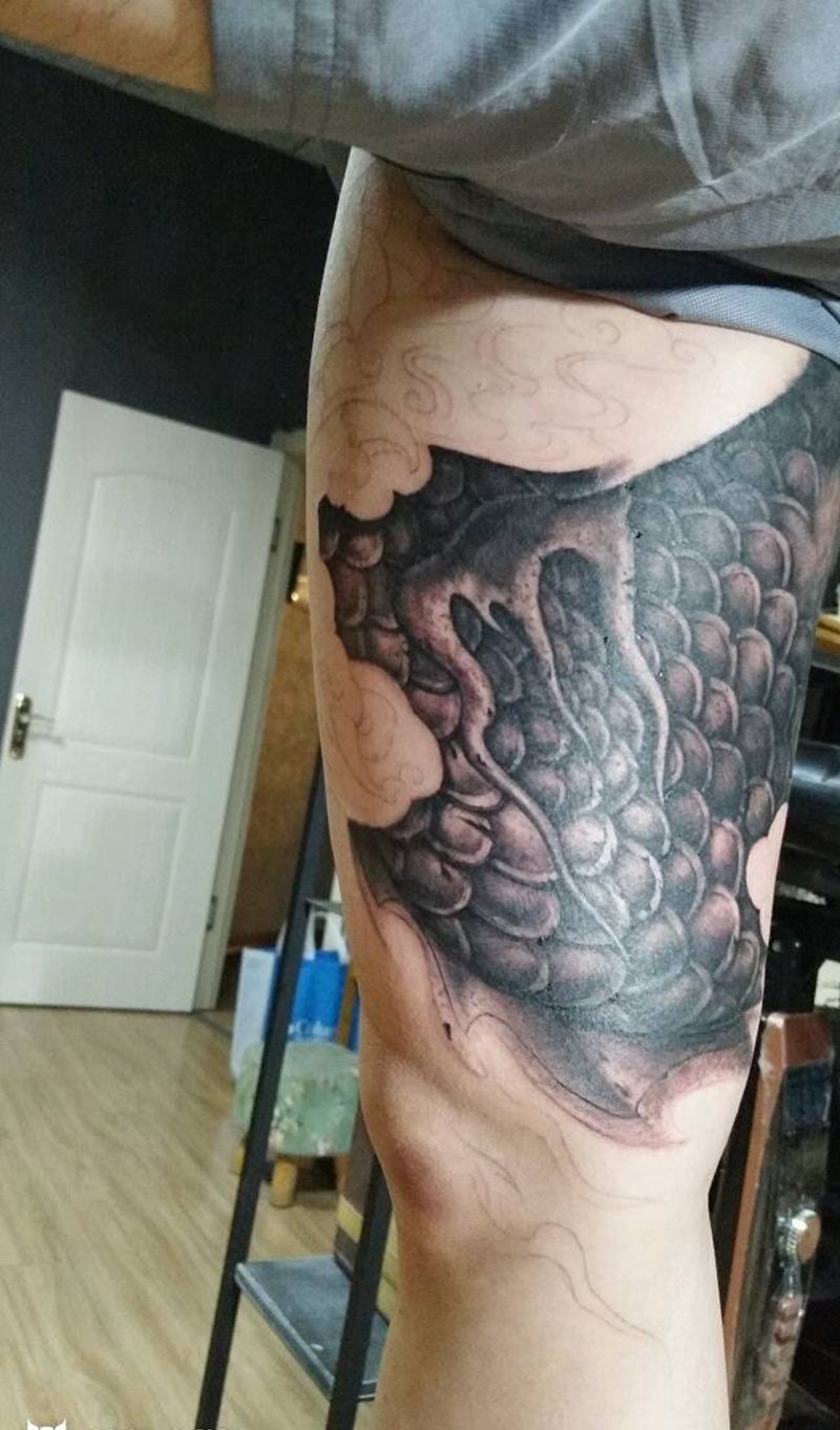 • T网红王老大花腿龙纹身图片_腿部新传统纹身图案