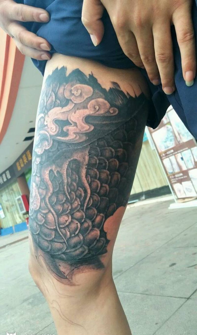 • T网红王老大花腿龙纹身图片_腿部新传统纹身图案