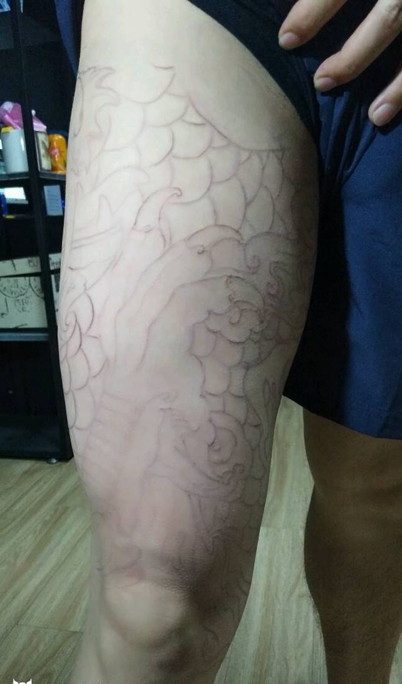 • T网红王老大花腿龙纹身图片_腿部新传统纹身图案