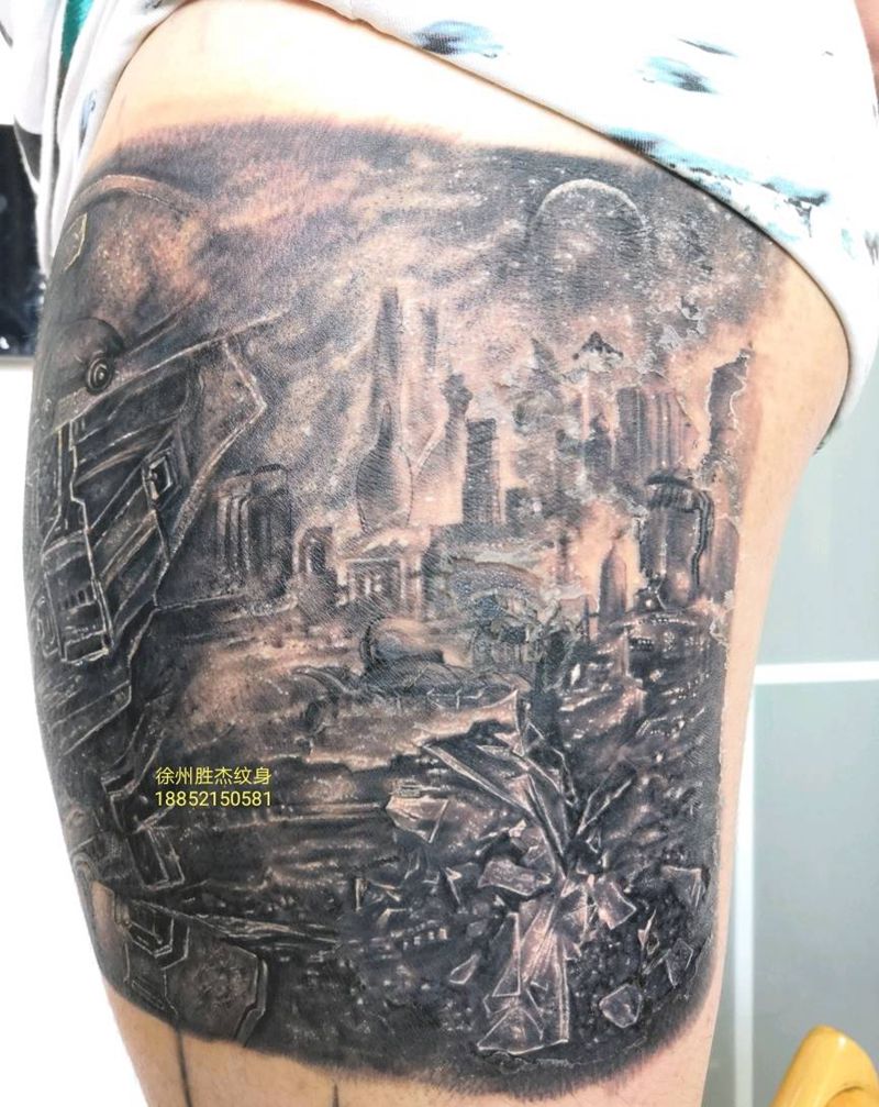 当前位置: 首页 >江苏省徐州市纹身店-徐州胜杰纹身纹身图案>机械头盔生化写实纹身图片_腿部欧美写实纹身图案