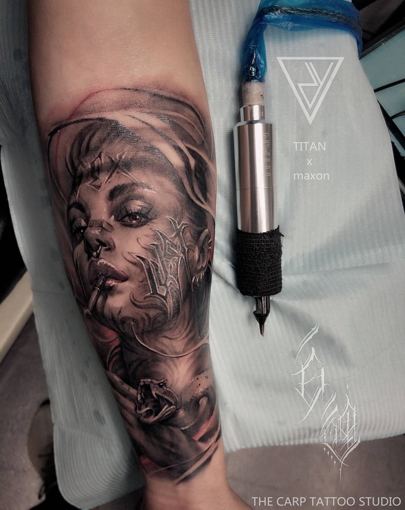 当前位置: 首页 >江苏省徐州市纹身店-白鲤刺青纹身图案>肖像纹身图片_手臂欧美写实纹身图案