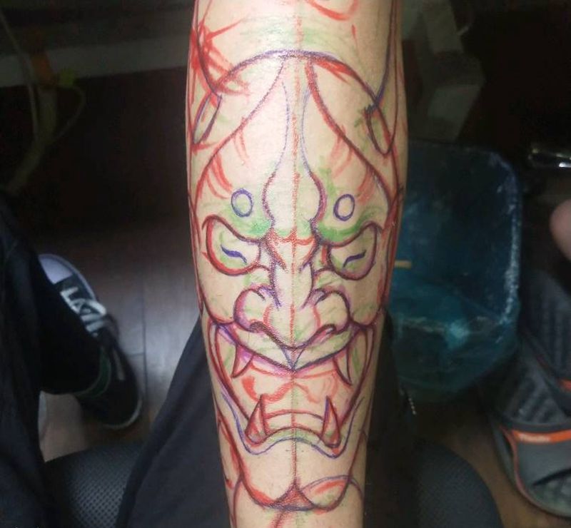 当前位置: 首页 >江苏省徐州市纹身店-彫狩刺青处纹身图案>全程手绘圆三打雾般若纹身图片_脚部腿部老传统纹身图案