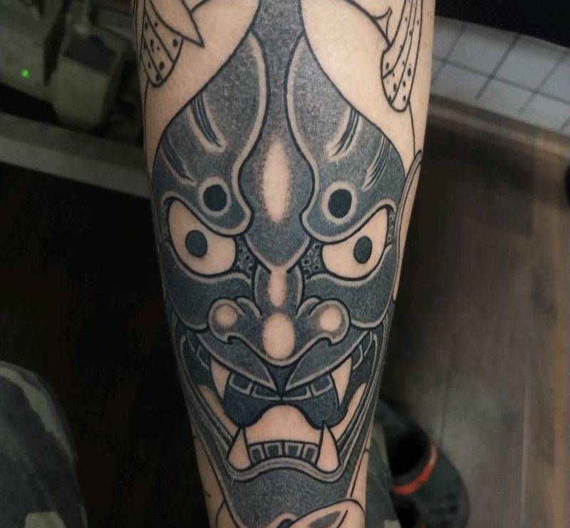 全程手绘圆三打雾般若纹身图片_脚部腿部老传统纹身图案
