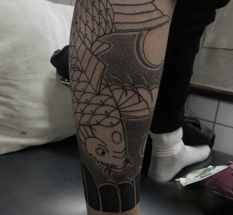 日式鲤鱼纹身图片_脚部腿部老传统鱼纹身图案
