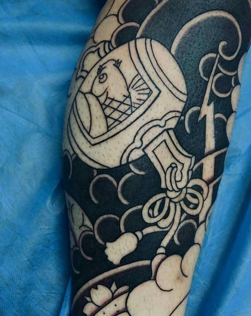 当前位置: 首页 >江苏省徐州市纹身店-彫狩刺青处纹身图案>日式福锤小腿纹身图片_腿部脚部老传统纹身图案