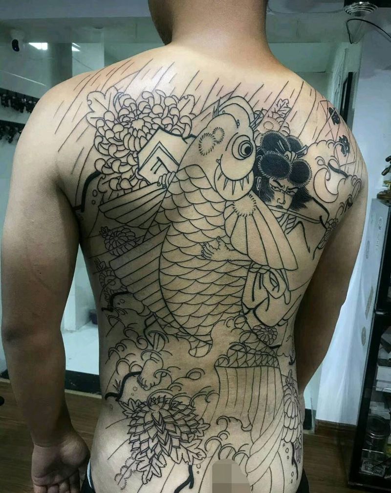 鬼若丸杀鲤纹身图片_臀部背部老传统纹身图案