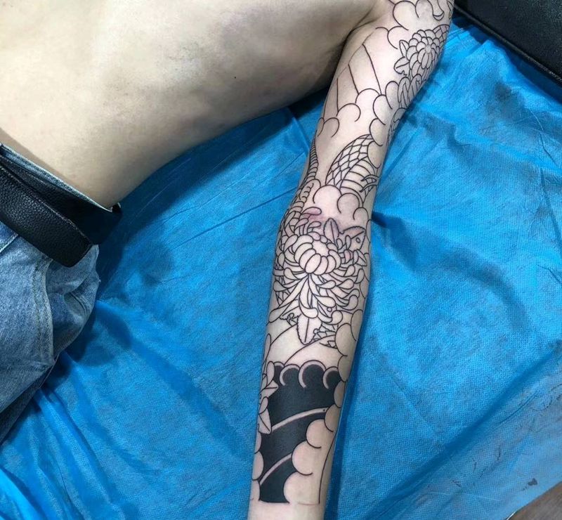 当前位置: 首页 >江苏省徐州市纹身店-彫狩刺青处纹身图案>日式菊花蛇花臂纹身图片_手部手臂老传统纹身图案