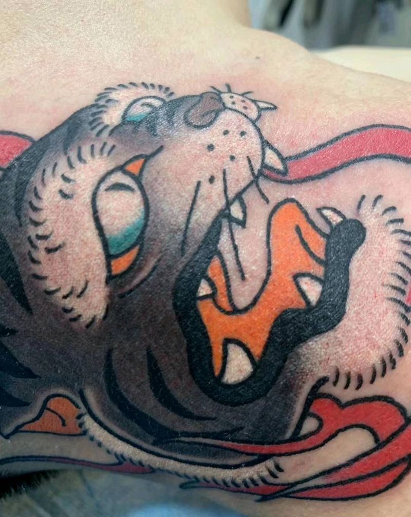 日式老虎纹身图片_颈部肩部老传统纹身图案