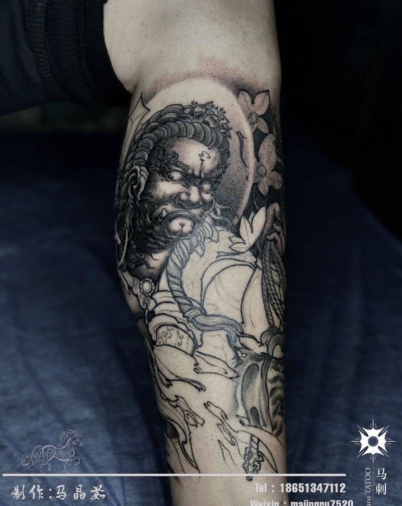 不动明王纹身图片_腿部纹身图案