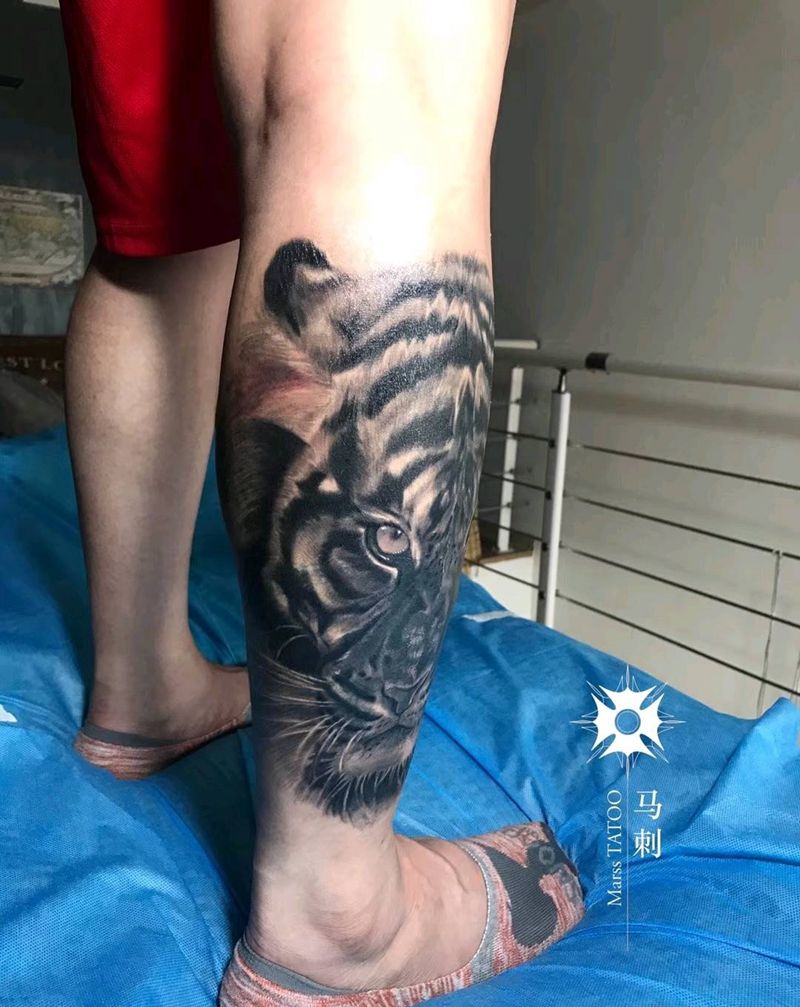 • T网红王老大花腿龙纹身图片_腿部新传统纹身图案