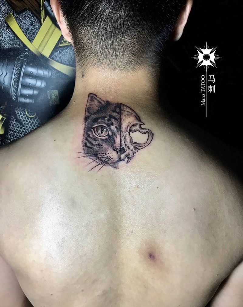 当前位置: 首页 >江苏省徐州市纹身店-马刺·tattoo纹身图案>骷髅猫纹身图片